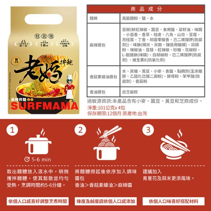 麻辣口味乾拌麵 1箱 (12袋共48份入)